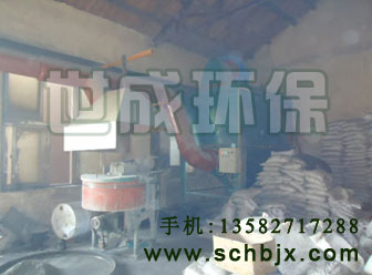 化工厂混料车间在对粉料进行搅拌、混料的时候会有大量粉尘产生,我们采用在加料口上部设计集气罩的形式进行收尘,起到了很好的收尘效果,解决了车间内环境污染的问题。